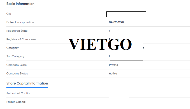 Địa chỉ công ty: ██████████, Ấn Độ