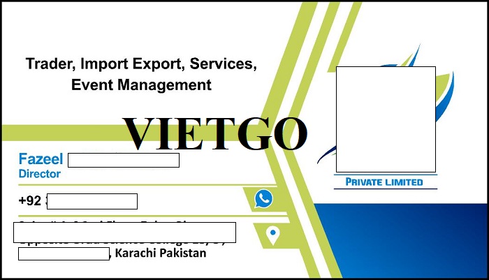 Ông Fazeel ██████████ - vị khách hàng của VIETGO lần này đại diện mua hàng đến từ Pakistan. Hiện tại ông là Quản lý của công ty ██████████, có trụ sở tại Karachi, Pakistan. Đây là công ty hoạt động trong lĩnh vực xuất nhập khẩu, dịch vụ và quản lý sự kiện. Với nhiều năm kinh nghiệm, công ty đã xây dựng được mạng lưới đối tác rộng rãi và không ngừng mở rộng hoạt động kinh doanh quốc tế, đặc biệt là nông sản và hàng hóa tiêu dùng. Ông dự định mua số lượng lớn gừng tươi rửa sạch đất với tần suất thường xuyên để đáp ứng nhu cầu khách hàng nội địa.