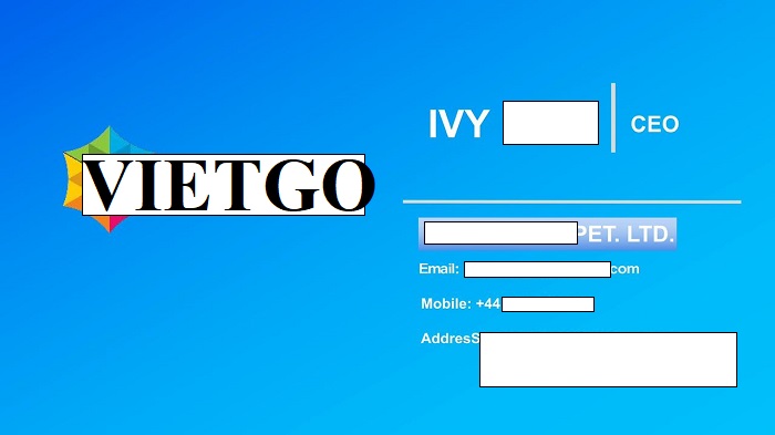Bà Ivy ████████████████████- vị khách hàng của VIETGO lần này đại diện mua hàng đến từ Trung Quốc. Hiện tại, bà đang là Giám đốc công ty ██████████, có trụ sở tại Trung Quốc, Anh và Singapore. Đây là công ty chuyên hoạt động trong lĩnh vực thương mại và kết nối chuỗi cung ứng toàn cầu. Với đội ngũ giàu kinh nghiệm và mạng lưới đối tác rộng khắp, công ty luôn hướng tới việc xây dựng các mối quan hệ hợp tác bền vững. Bà Ivy đang có nhu cầu mở rộng thị trường và tìm kiếm nguồn cung đỗ xanh chất lượng cao để phân phối đến khách hàng nội địa.