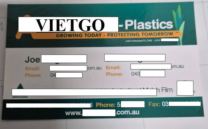 ██████████ là một doanh nghiệp tiên phong trong lĩnh vực nhựa sinh học tại Úc, cung cấp các giải pháp vật liệu thân thiện môi trường, góp phần thúc đẩy nền nông nghiệp xanh và bền vững trên toàn cầu. Vậy, Quý nhà cung cấp nào có thể đáp ứng cho đơn hàng nhập khẩu của ông Joe vui lòng liên hệ với vị khách hàng theo thông tin được cung cấp dưới đây.