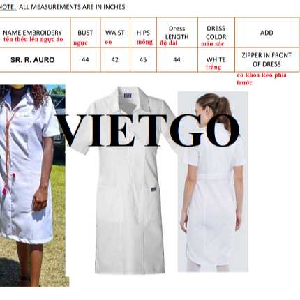 VIETGO xin gửi tới Quý nhà cung cấp thông tin về đơn hàng đồng phục y tế của ông Joseph, phục vụ cho nhu cầu kinh doanh của công ty tại thị trường Papua New Guinea.